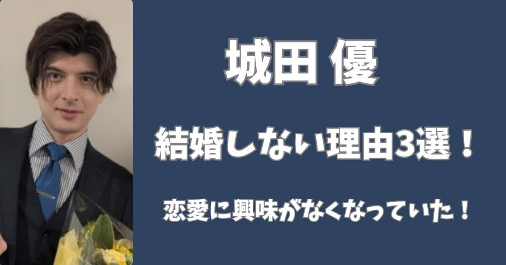 俳優の城田優さんは舞台やドラマで活躍するなどイケメン俳優として人気があります。 そんな城田さんですが、2025年現在結婚されていません。 あれほどイケメンな城田さんに、なぜお嫁さんがいないのか不思議に思う方もいらっしゃるのではないでしょうか? ...